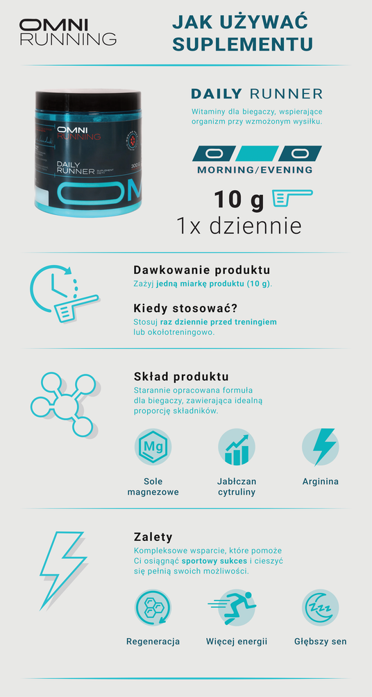 Daily Runner to świetny produkt! Od kiedy go używam, mam więcej energii na treningach i czuję się lepiej. Polecam każdemu kto chce biegać i mieć energię.