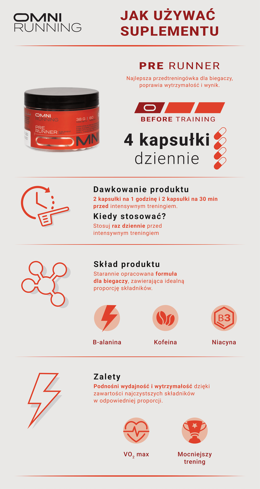 Jednym słowem Pre Runner podnośni wydajność i wytrzymałość dzięki zawartości najczystszych składników w odpowiedniej proporcji.